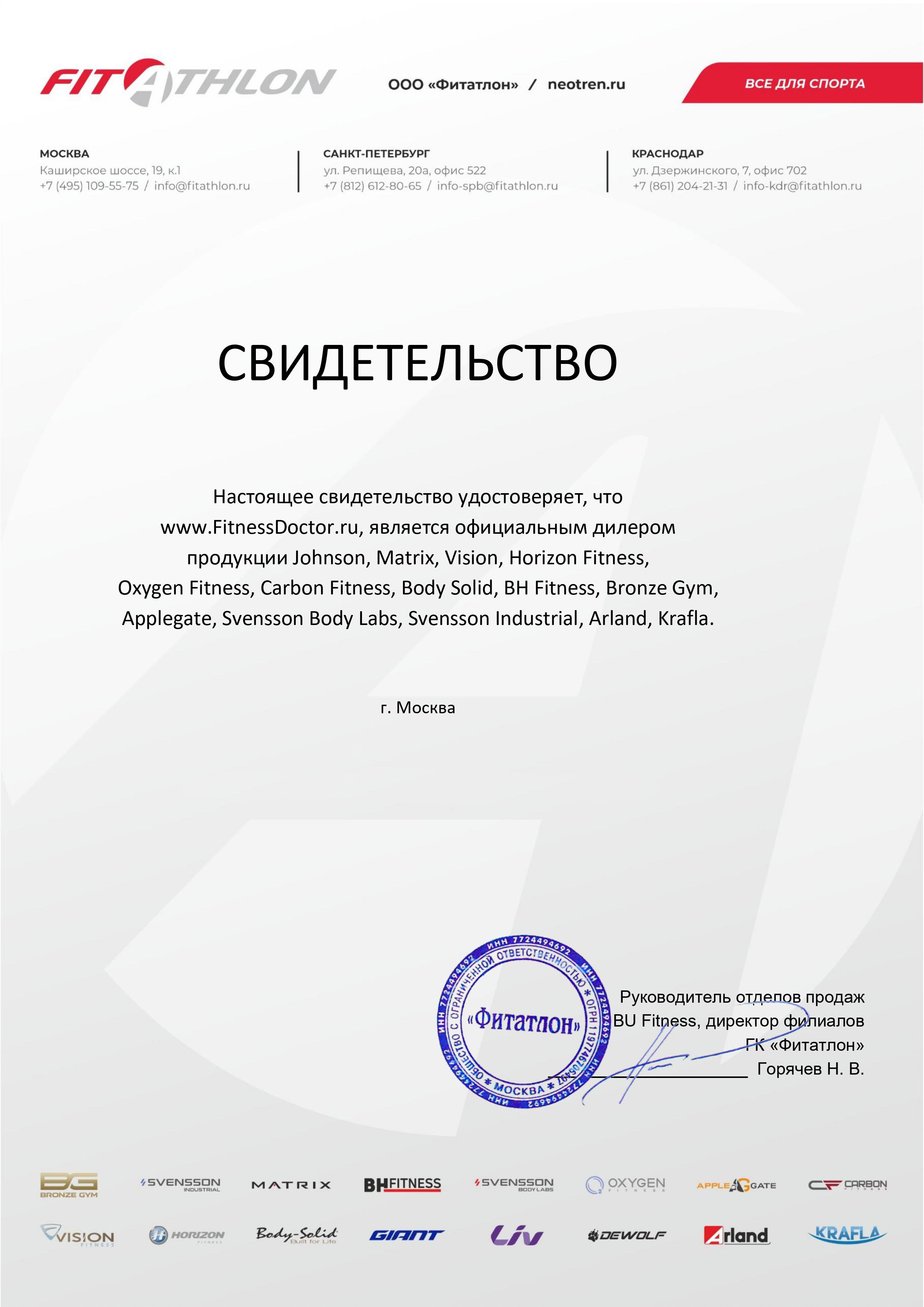 Лицензии и сертификаты на товар. Наша компания - официальный дилер бренда.